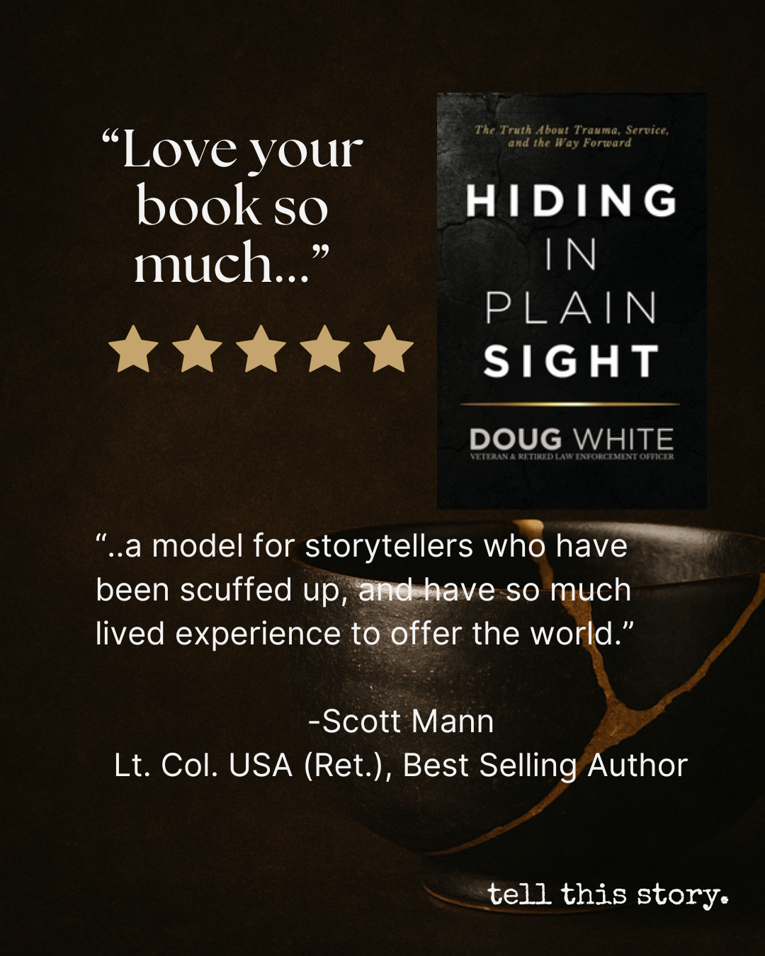 Today, he shares that roadmap with veterans, first responders, and the families who serve beside them. As an award-winning and best-selling author of Hiding in Plain Sight, host of the Tell This Story podcast, and a sought-after keynote speaker, Doug delivers no-fluff strategies for mental fitness, mission-driven leadership, and thriving in service and transition so others can turn their scars into strength.